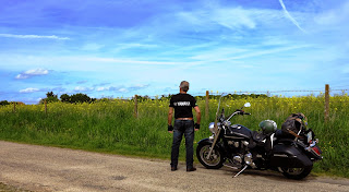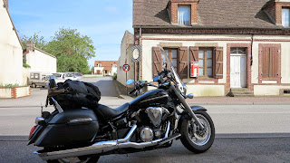 Hoje sai tarde de Paris, tive que esperar as lojas abrirem e comprar ferramentas para instalar o suporte do GPS no “handle-bar”. Só não instalei a parte elétrica porque fui recomendado a levar a Brigitte apenas na rede autorizada  Yamaha, por sinal a maior da Europa.  Amanhã resolvo mais essa parada, enquanto isso o negócio foi carregar a bateria do GPS e vir economizando ao máximo. Ainda assim a bateria do GPS zerou e só me restou o mapa. Estou fazendo meu percurso fugindo das grandes estradas, com isso evito pedágios, passo por pequenas vilas francesas e arremato traçando umas curvinhas que já me fizeram arrastar a plataforma da Brigitte. O único inconveniente dessas estradas secundárias é que você pilota praticamente dentro de um cartão postal e tem que se portar à altura do momento para não destoar do conjunto da obra.....é muita responsabilidade para um velho e encarquilhado motoqueiro !  Só me resta, corrigir a postura, mãos naturalmente pousadas nas manetes, cotovelos mais baixos do que os punhos, cabeça erguida e o olhar como o que de uma águia fitando sua presa no horizonte, arrematando com o velho e saudável sorriso nos lábios de quem se sabe recompensado pela vida.